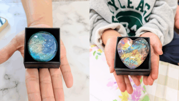 氷のように透き通る石けんに、筆で色をのせるだけ。